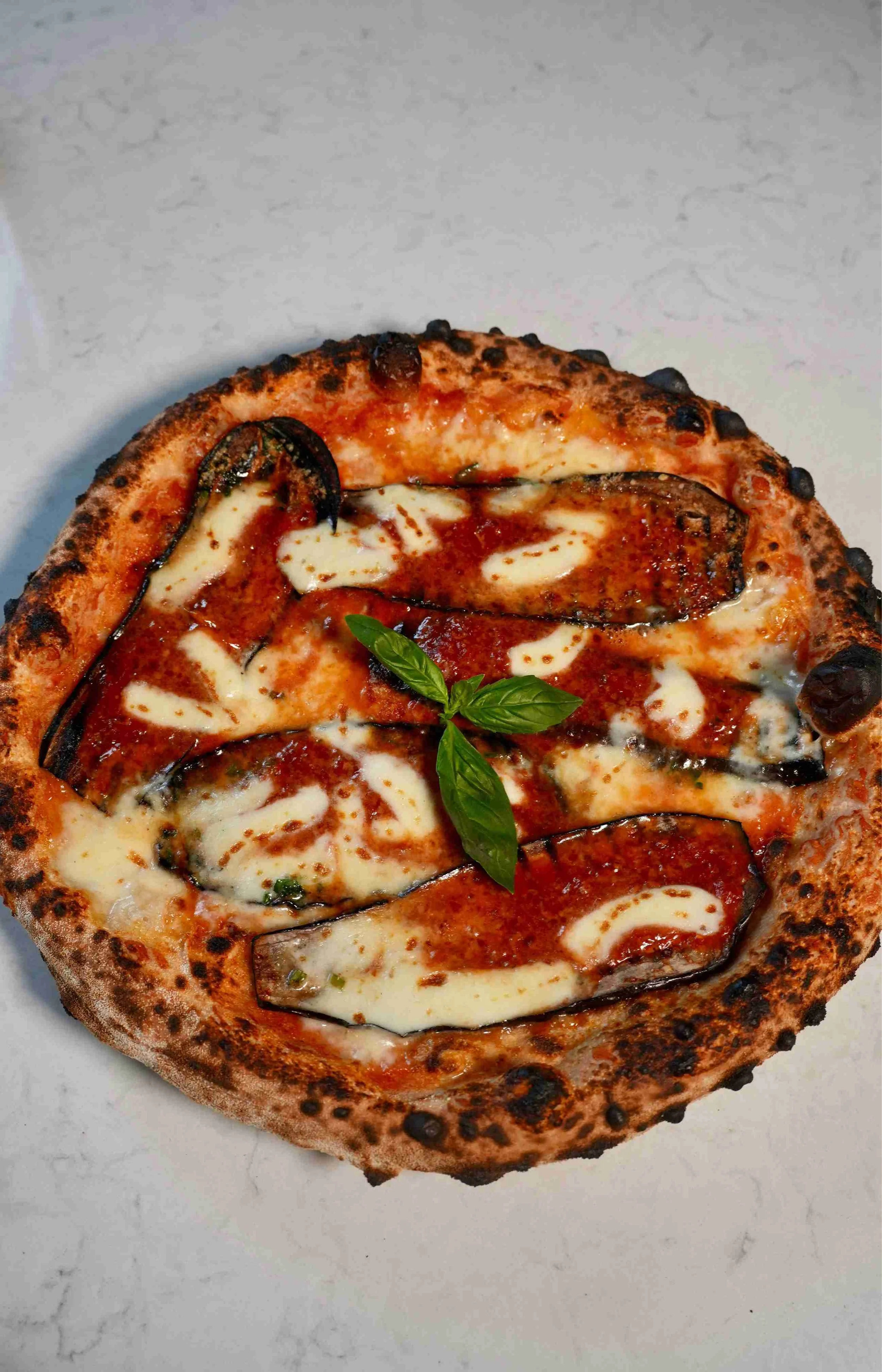 polpa di pomodoro, fior di latte, grilled eggplant, fresh basil + shaved parmesan