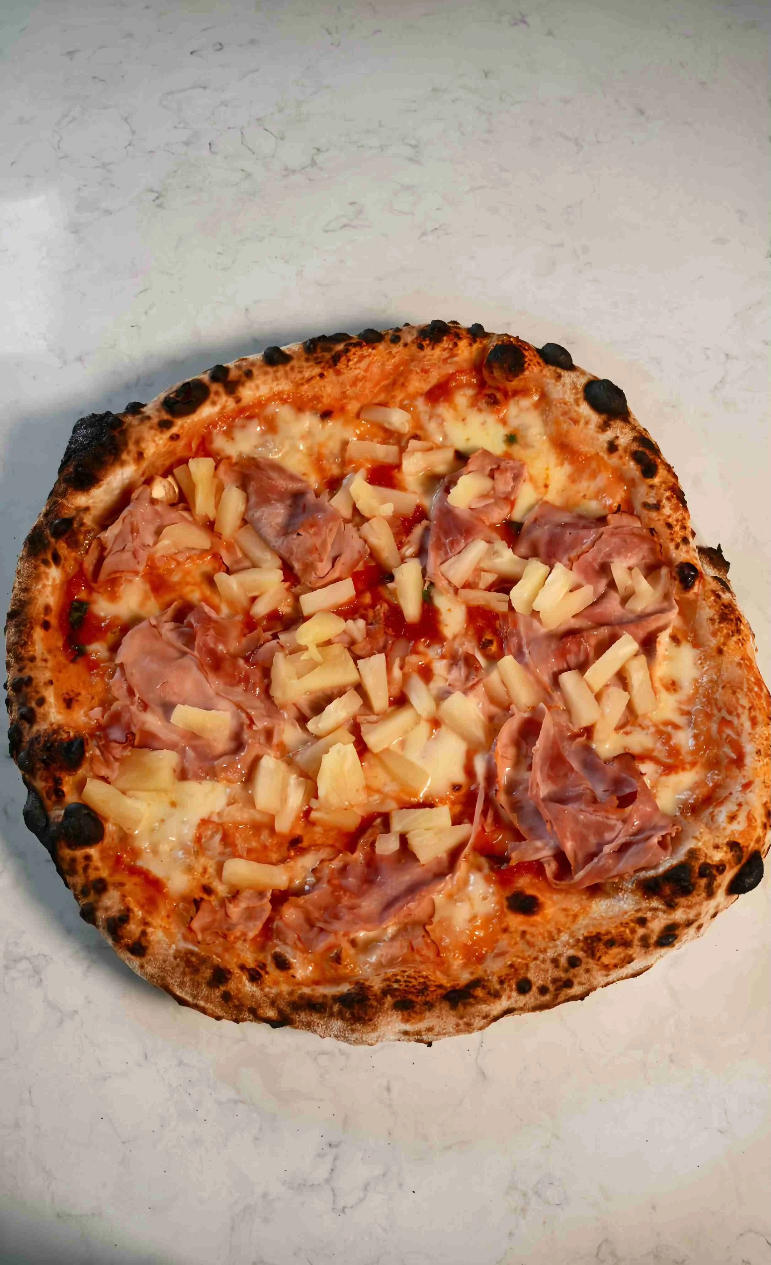 polpa di pomodoro, fior di latte, leg ham + pineapple